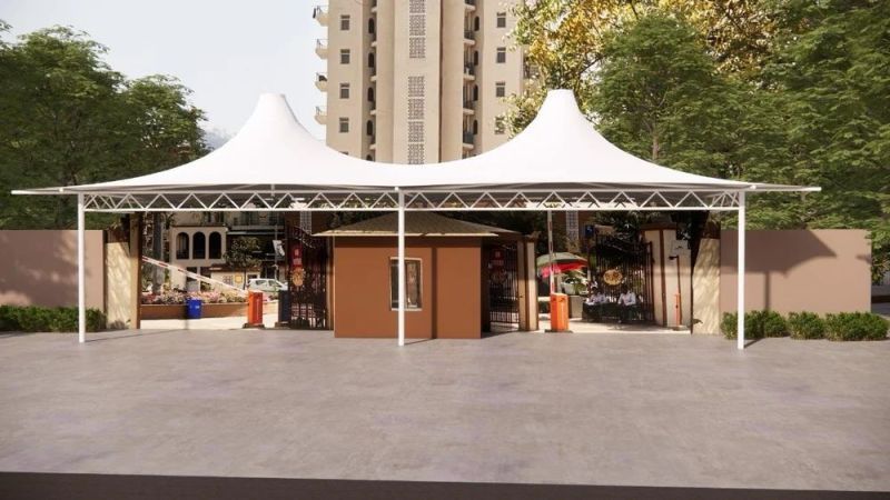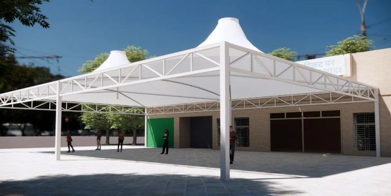 Introducing our Prefab Conical Roofing Tensile Structure, crafted with high-quality Tensile Fabric for durability. Its unique conical shape adds a modern touch to any space. This prefab structure comes with a sleek paint-coated surface for a polished look. The plain pattern enhances its elegance, making it a perfect choice for both residential and commercial settings.